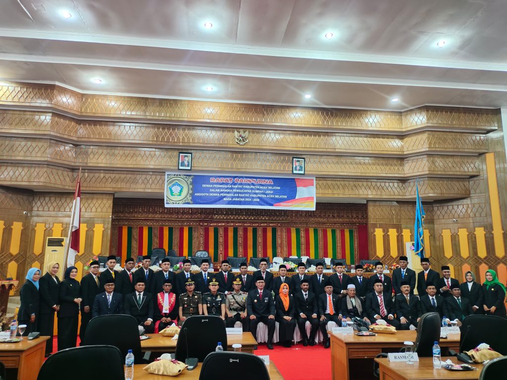 ACEH SELATAN, KBBAceh.news – Sebanyak 30 anggota Dewa Perwakilan Rakyat Kabupaten (DPRK) Aceh Selatan, masa periode 2024-2029 dilantik dalam rapat paripurna, di Ruang Sidang Paripurna DPRK setempat, Senin 2 September 2024.