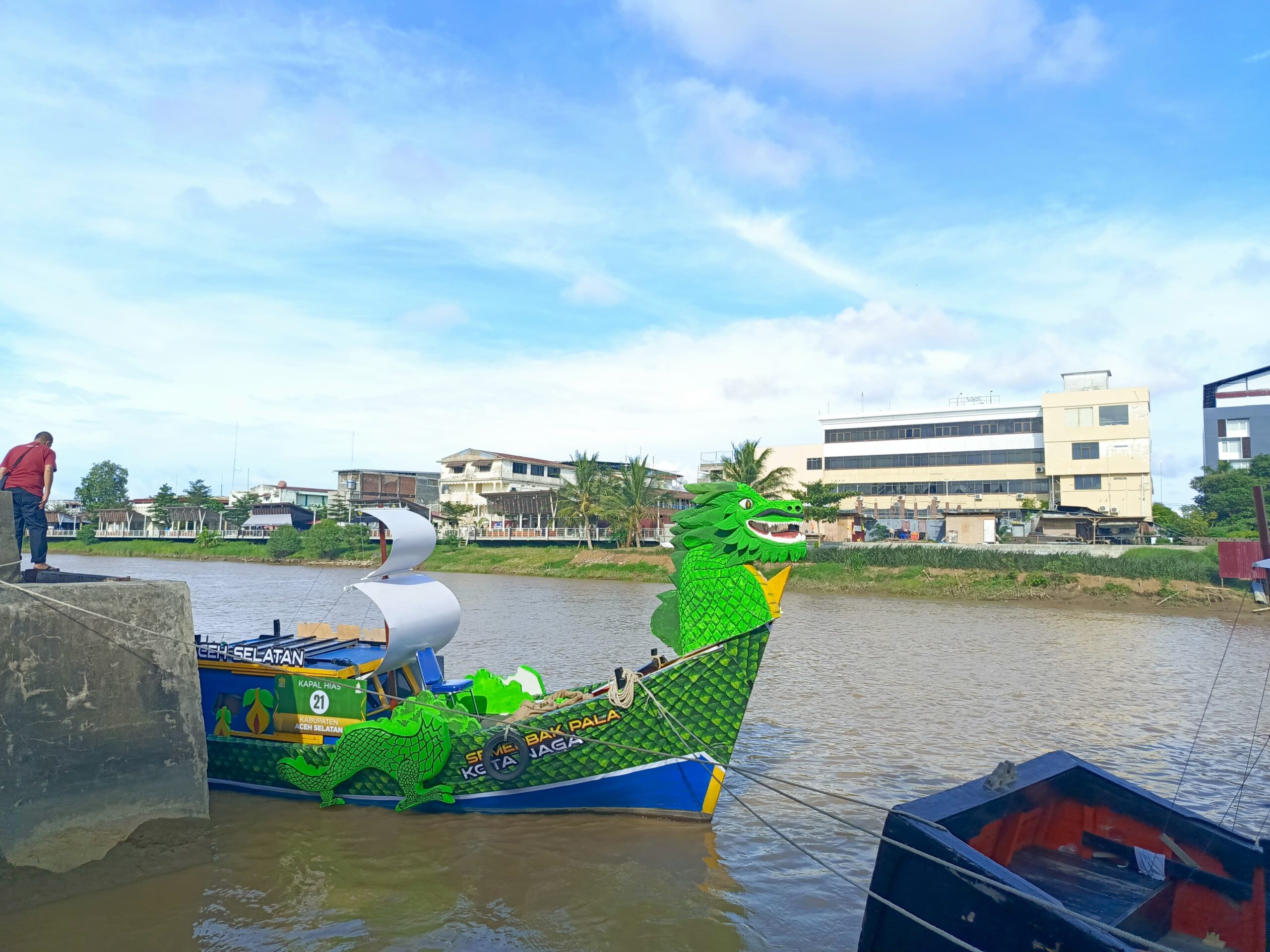 Perahu hias yang ditampilkan kali ini mengusung konsep โJalur Perdagangan Rempahโ yang merupakan salah satu armada dagang tempo dulu.