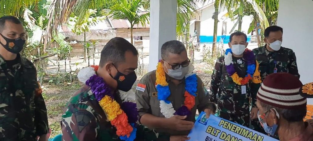 Secara simbolis Aspotmar KASAL menyerahkan Dana Bantuan Langsung Tunai (BLT) desa Bulu Hadek kepada perwakilan masyarakat