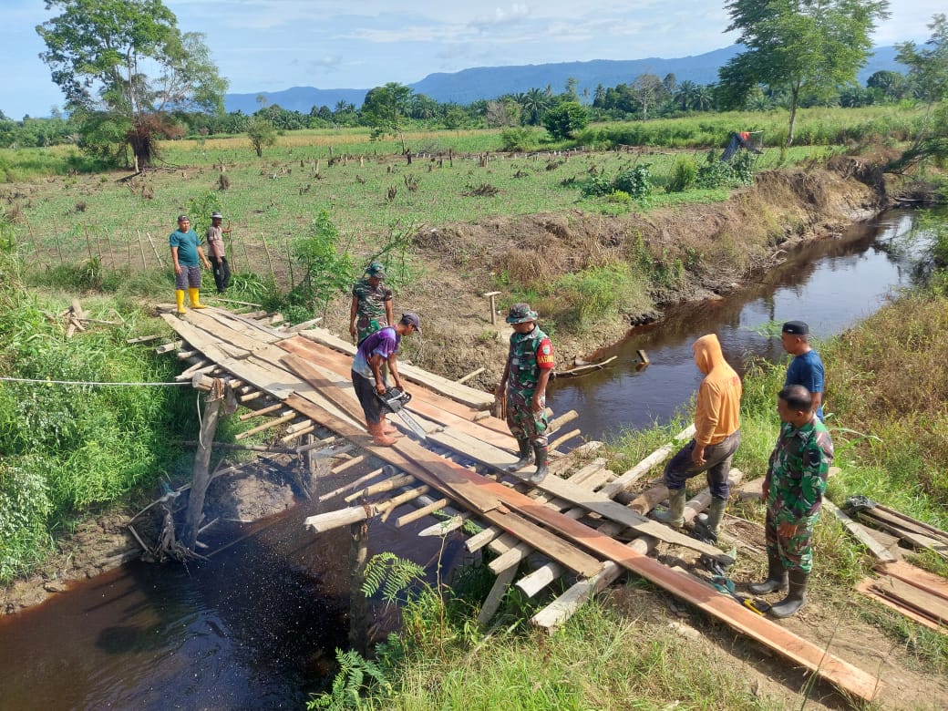 Melihat kondisi diwilayah perlunya sentuhan bersama, jajaran Kodim Aceh Selatan melalui Babinsanya melakukan koordinasi dengan pihak desa untuk memperbaiki jemabatan yang rusak yang ada di desa-desanya. Alhasil, pada hari ini anggota Babinsa jajaran Kodim 0107/Aceh Selatan bersama-masa warga turun kelokasi dan langsung memperbaiki jambatan yang sangat dibutuhkan warga setempat.