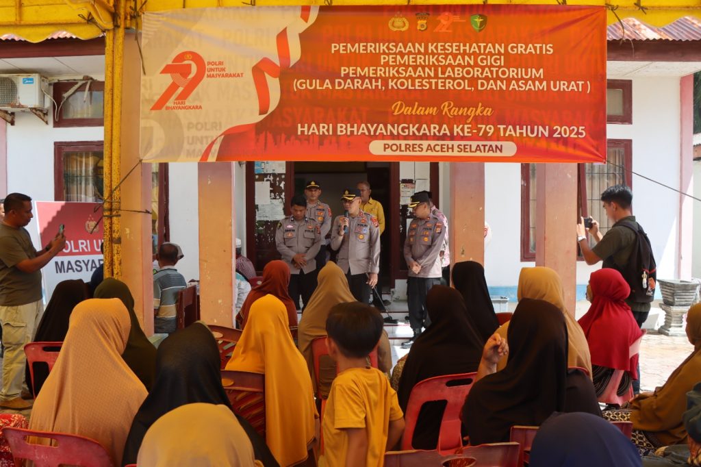 KBBAceh.News | Tapaktuan – Sebagai bentuk nyata pengabdian Polri kepada masyarakat sekaligus dalam rangka menyemarakkan Hari Bhayangkara ke-79 Tahun 2025, Polres Aceh Selatan Polda Aceh melaksanakan kegiatan bakti kesehatan dan pengobatan gratis bagi Masyarakat. Kegiatan ini berlangsung di Gampong Sawang Ba’u, Kecamatan Sawang dan disambut dengan antusias oleh masyarakat, Kamis, 26 Juni 2025.
