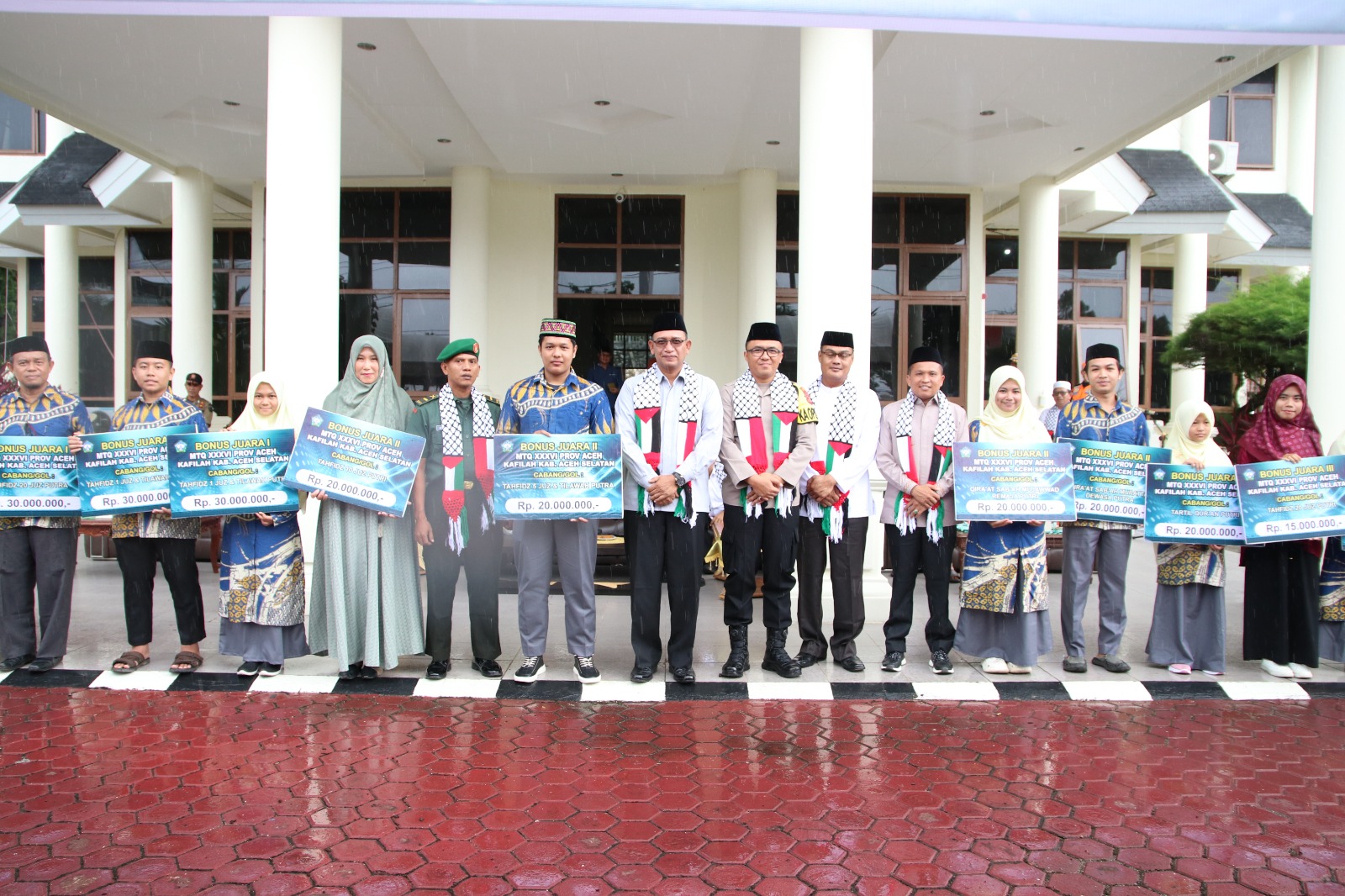“Atas nama pemerintah daerah, kami mengucapkan terima kasih atas perjuangan saudara dan saudari, putra putri terbaik Aceh Selatan yang telah berusaha dengan maksimal, mengharumkan nama Aceh Selatan, tentunya dibarengi dengan niat tulus dan ikhlas untuk mengagungkan kitab suci Al-quran.