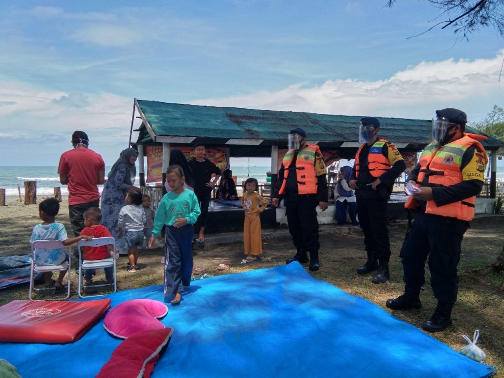 “Ya selain sosialisasi protkes, kehadiran kami juga dalam rangka patroli SAR di objek wisata, kami tetap siaga untuk kemanusiaan,” tandas Iptu Nurdin.