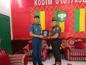 KBBAceh.News | ‎Tapaktuan – Komandan Kodim 0107/Aceh Selatan, Letkol Inf Andrino Lubis, S.Sos, menyambut kunjungan kerja Komandan Pangkalan TNI Angkatan Laut (Danlanal) Simeulue, Letkol Laut (P) Wisnu Pryangga N., S.T., M.Tr. Opsla, di Makodim 0107/Aceh Selatan Desa Lhok Bengkuang Timur, Kecamatan Tapaktuan, Selasa (04/11/2025).