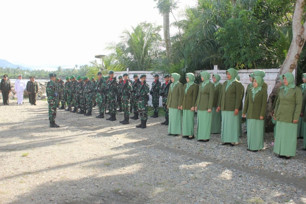 Kemudian, Danramil jajaran, Ketua Persit KCK Cabang XXIX Kodim 0107/Aceh Selatan Ny. Dewi Helmy, pengurus Persit, Ketua Persit KCK Cabang XXXVIII Yonif RK 115/ML Ny. Gustin Raden Herman Sasmita, Muspika Kluet Selatan dan barisan upacara dari TNI/Polri dan undangan lainnya.