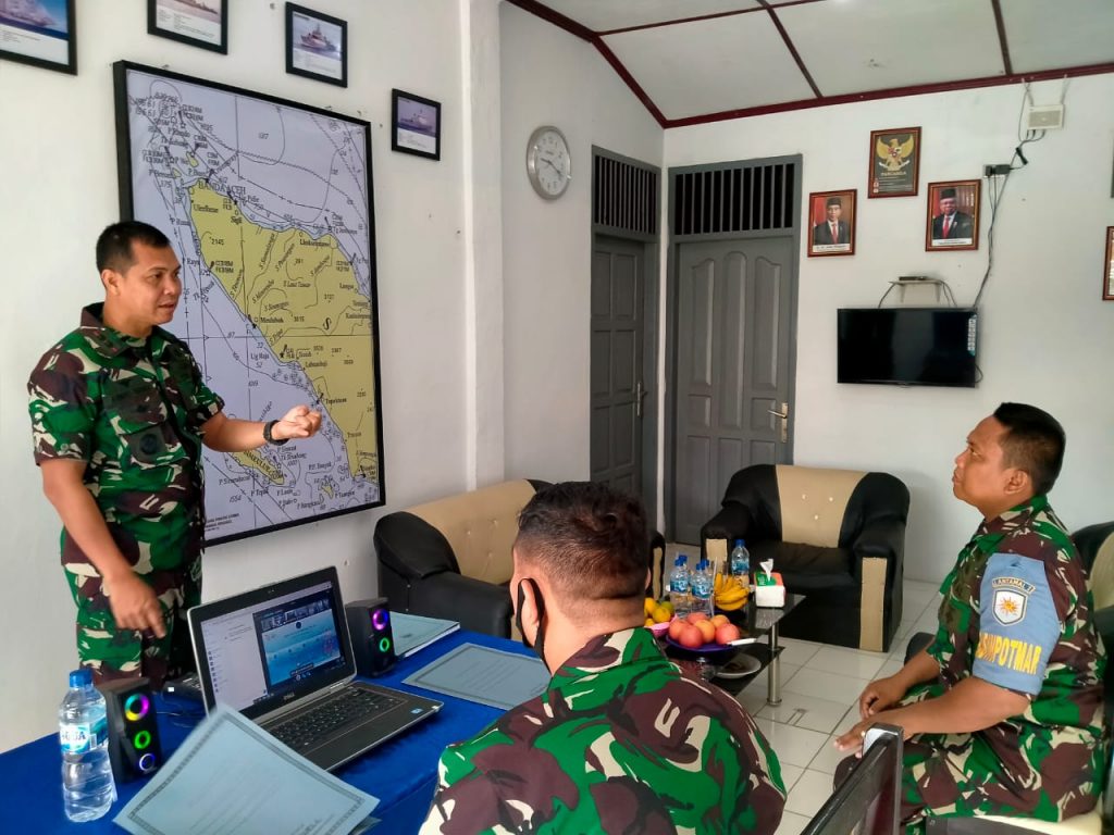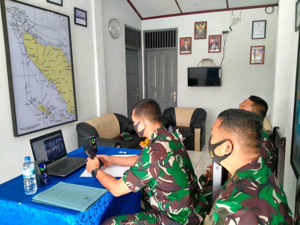 Selain meninjau Pos TNI AL Tapak Tuan, Komandan Lanal Simeulue mengikuti rapat dengan Komandan Lantamal I secara virtual melalui Video Conference (Vicon).