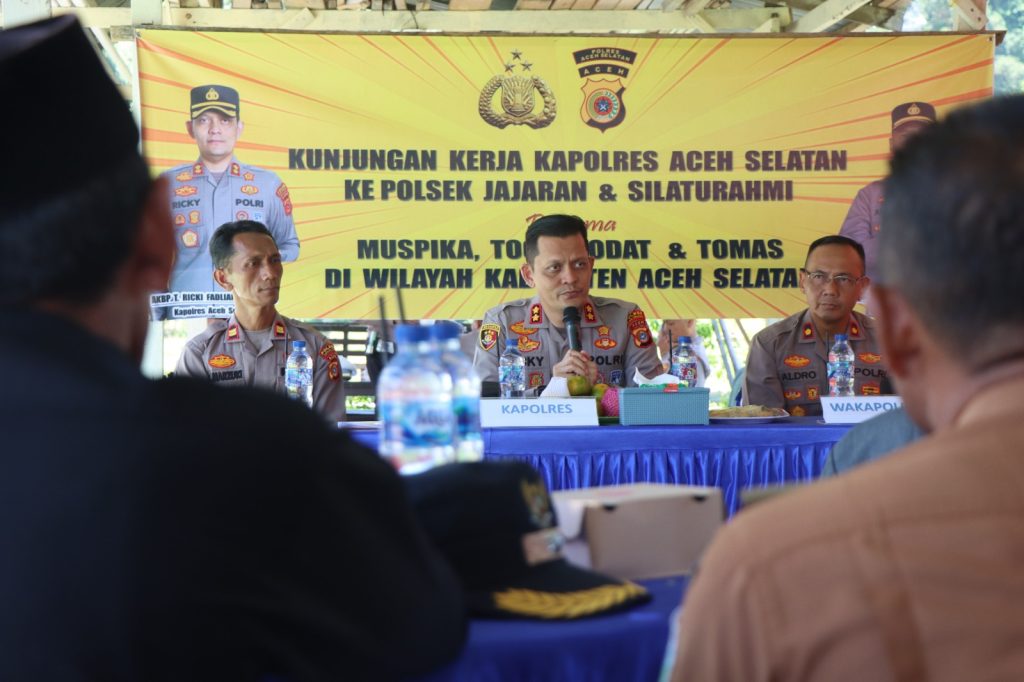 Tapaktuan, KBBAceh.news – Kapolres Aceh Selatan AKBP T. Ricki Fadliansyah, S.I.K., melanjutkan agenda kunjungan kerja ke jajaran Polsek di wilayah hukumnya. Memasuki hari kedua, kunjungan difokuskan pada Polsek Meukek dan Polsek Labuhanhaji Timur. Kegiatan ini bertujuan untuk memperkuat semangat kerja, memastikan kesiapan operasional, serta menjalin komunikasi yang sinergis dengan unsur Forkopimcam dan tokoh masyarakat setempat, Selasa, 6 Mei 2025.