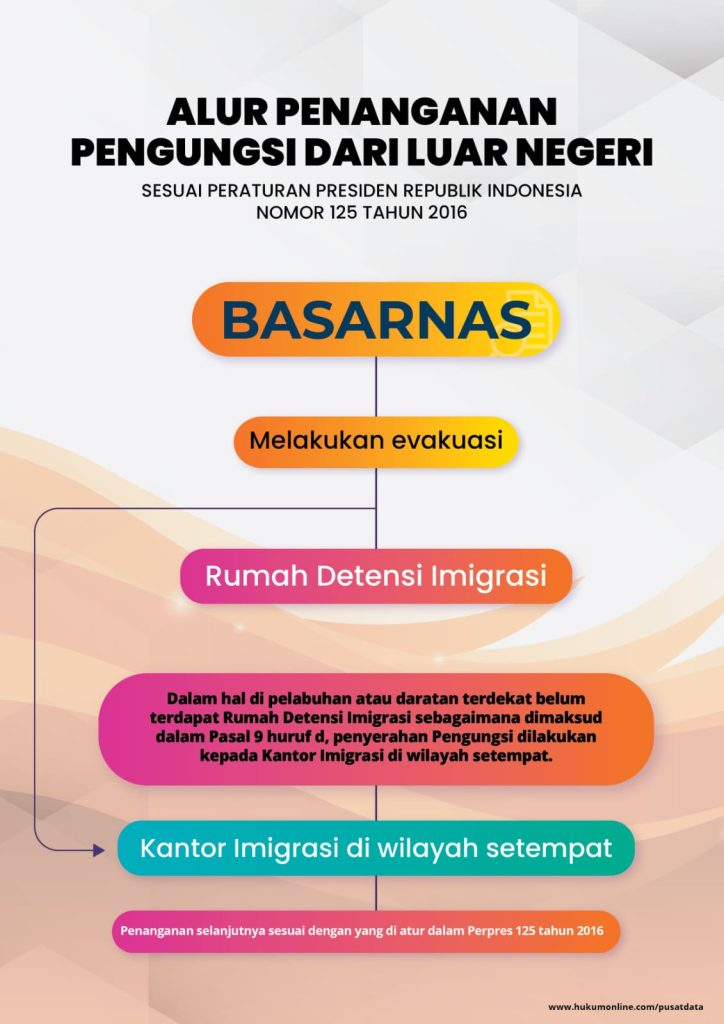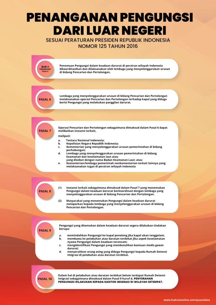 Haikal juga meneruskan, Alur Penanganan Pengungsi dari Luar Negeri sesuai dengan Perpres No. 125 Tahun 2016, Bahwa jika ada penemuan pengungsi di wilayah Perairan .