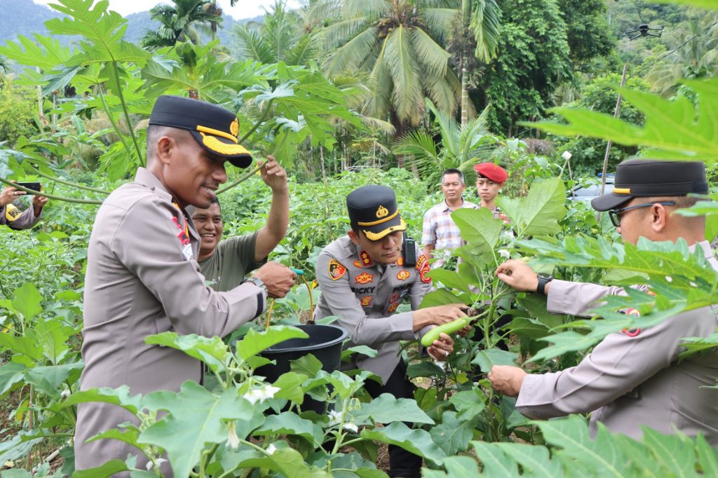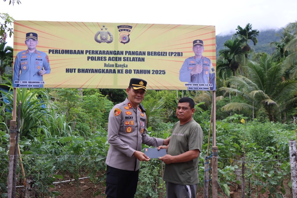 KBBAceh.News | Tapaktuan – Dalam rangka mendukung program Ketahanan Pangan serta menyukseskan Lomba Pekarangan Pangan Bergizi (P2B) yang merupakan rangkaian kegiatan menyambut Hari Bhayangkara ke-78, Kapolres Aceh Selatan AKBP T.Ricki Fadlianshah, S.I.K., didampingi para PJU Polres Aceh Selatan melakukan pengecekan langsung ke lokasi lahan ketahanan pangan di Desa Ladang Teungoh, Kecamatan Pasie Raja, Kabupaten Aceh Selatan, Rabu, 21 Mei 2025.