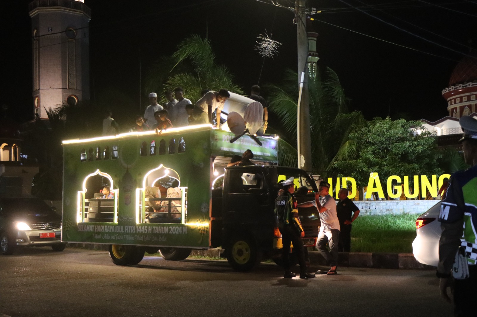 “Kehadiran kami bersama Forkopimda dan masyarakat dalam kegiatan takbiran keliling ini merupakan wujud kepedulian dan sinergi antara kepolisian, pemerintah, dan masyarakat dalam menjaga kebersamaan dan keamanan jelang Hari Raya Idul Fitri.” Ujar Mughi