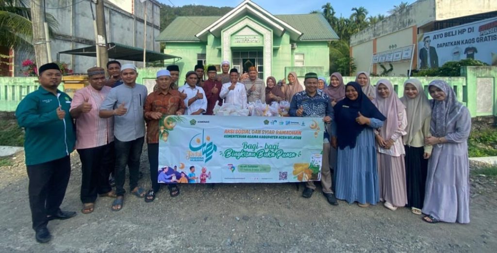 KBBAcehnews.com | TAPAKTUAN – Keluarga besar Kementerian Agama (Kemenag) dipimpin Kepala Kantor Kabupaten Aceh Selatan Provinsi Aceh, Khairul Huda, S.Hi, M.Si, turun gunung menyelenggarakan agenda teras Zawa pembagian takjil berbuka puasa Ramadhan 1447 hijriah di tiga titik, Jumat, 06 Maret 2026.