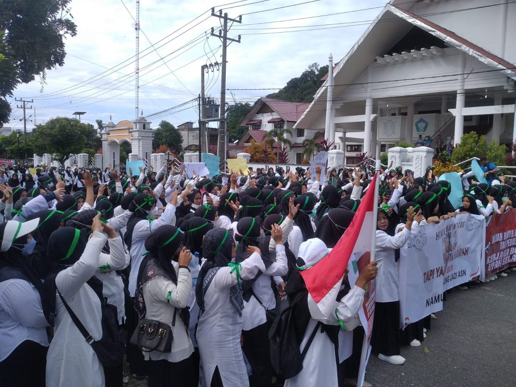 Ketua Forum Diskusi Honorer Aceh Selatan (FDTHAS) Azwar dalam orasinya menyampaikan 6 tuntutan antara lain :