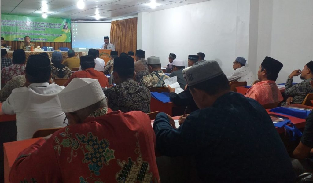 Tapaktuan, KBBACEH.news – Badan Kesatuan Bangsa dan Politik (Kesbangpol) Aceh Selatan, menggelar sosialisasi Peraturan Menteri Dalam Negeri dan Menteri Agama Nomor 9 dan Nomor 8 Tahun 2006, serta Qanun Aceh Nomor 4 Tahun 2016, Selasa (23/8/2022).