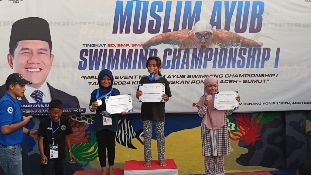 Aceh Besar, KBBAceh.news – Atlit renang Aceh Selatan di bawah binaan Klub Renang Lumba-Lumba dibawah pimpinan Imam Khoiri berhasil membawa pulang medali emas dalam kejuaran Renang “Muslim Ayub Swimming Championship – I Tahun 2024” tingkat SD – SMA yang di adakan di Kolam Renang Raider 112/DJ Punie Aceh Besar pada, Minggu 30 Juni 2024.