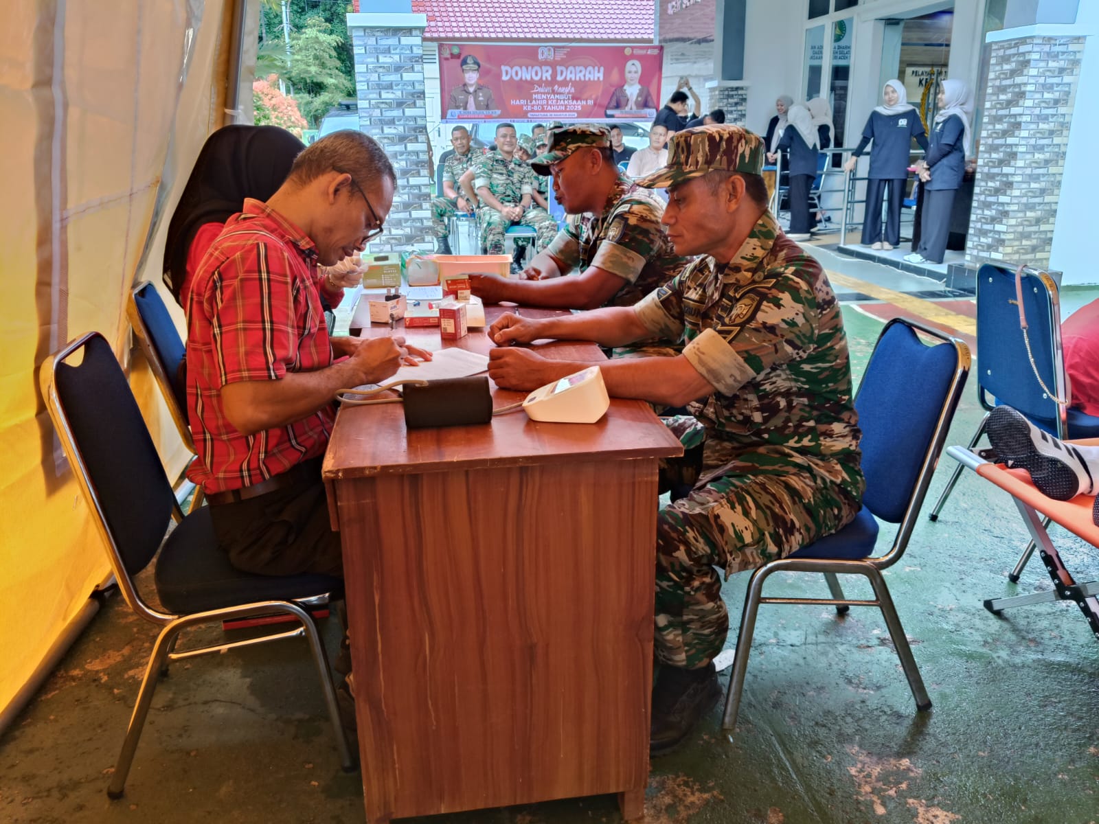KBBAceh.News | Aceh Selatan – Personel Kodim 0107/Aceh Selatan turut berpartisipasi dalam kegiatan donor darah yang digelar dalam rangka memperingati Hari Kejaksaan ke-80 yang digelar di Kantor Kejaksaan Negeri Tapaktuan, Jumat (29/8/2025).