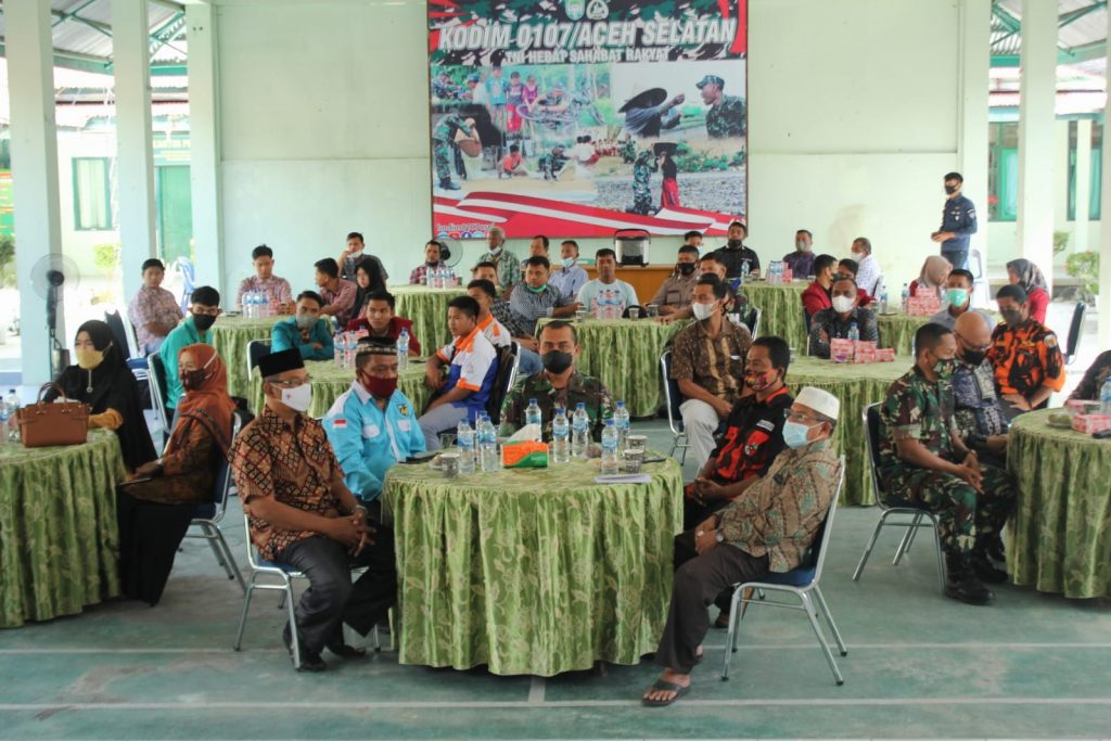 Kegiatan ini berlangsung di Aula Makodim Jl T. Cut Ali Desa Lhok Bengkuang Timur Kecamatan Tapaktuan Kabupaten Aceh Selatan, Kamis (25/11/2021).