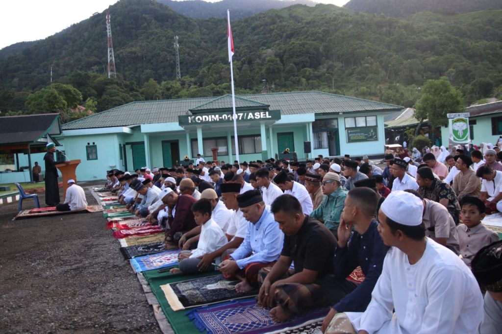 ‎Kodim 0107/Aceh Selatan Gelar Shalat Idul Adha Bersama Masyarakat di Lapangan Makodim