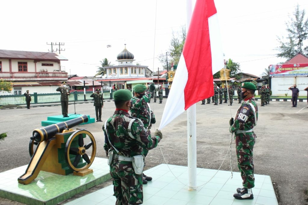 Upacara ini diikuti oleh Perwira Staf Kodim, Danramil jajaran serta sejumlah Personil dan PNS Kodim 0107/Aceh Selatan dengan tetap menerapkan anjuran protokol kesehatan Covid-19.