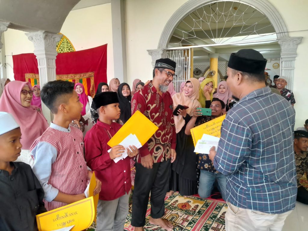 Acara santunan anak yatim dan fakir miskin kali ini turut di hadiri sejumlah tokoh masyarakat dan para tamu undangan lainya, berlangsung di Mesjid Al Hidayah Gampong Air Pinang, Minggu (12/3/2023).