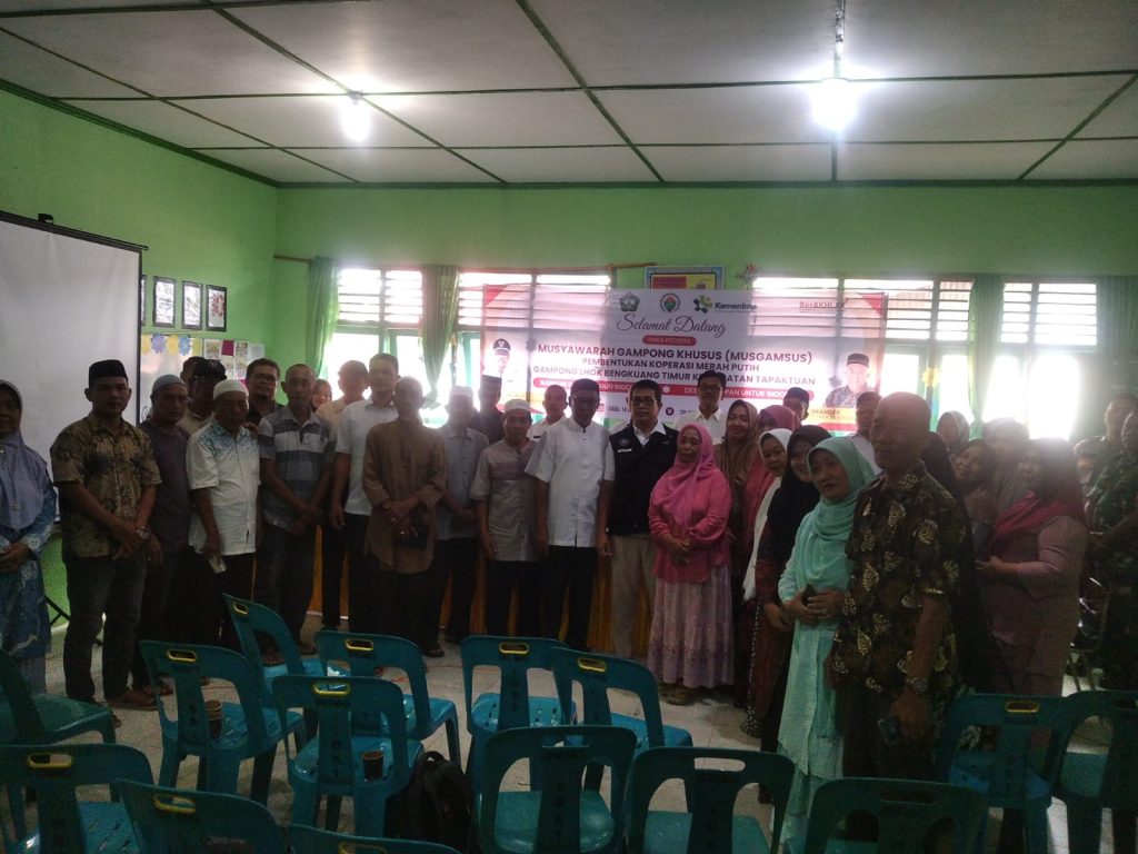 Sementara itu Camat Tapaktuan Ramzil Hadi, S.STP, M.MSi., dalam sambutannya mengatakan “Alhamdulillah bahwa Gampong Lhok Bengkuang Timur ini menjadi Gampong ke lima dalam membentuk Koperasi Desa Merah Putih di dalam wilayah Kabupaten Aceh Selatan, Ia mengatakan bahawa nantinya Koperasi ini akan di support baik oleh pemerintah daerah, provinsi maupun pemerintah pusat, jadi bukan hanya dari Gampong saja, tapi seluruh elemen di pemerintahan akan mensupport Koperasi Desa Merah Putih ini, karena tujuan Presidan adalah untuk meniungkatkan ekonomi mastarakat melalui pembentukan koperasi ini”, pungkas Ramzil.