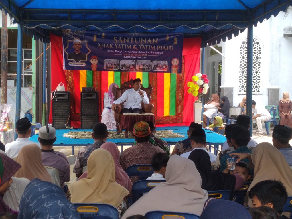 Acara santunan anak yatim menurut Ketua Panitia Saiful Rahman acara santunan anak yatim di Gampong Tepi Air merupakan acara rutin tiap tahunnya untuk menyambut kedatangan bulan Suci Ramadhan.