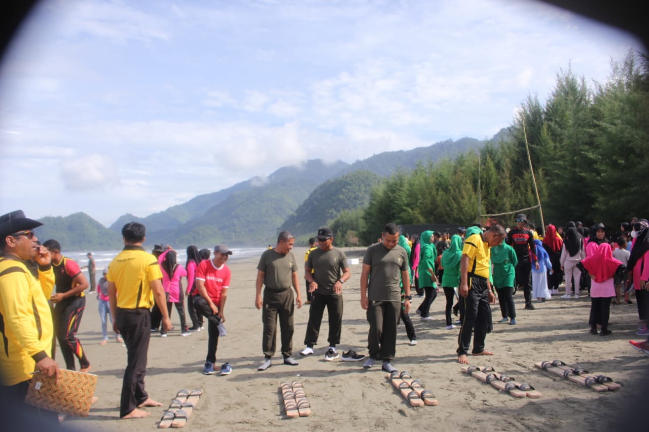 Kegiatan olah raga ini diawali dengan apel bersama dan dilanjutkan dengan Senam SKJ di pantai Desa Ujung Batu Kecamatan Pasie Raja.