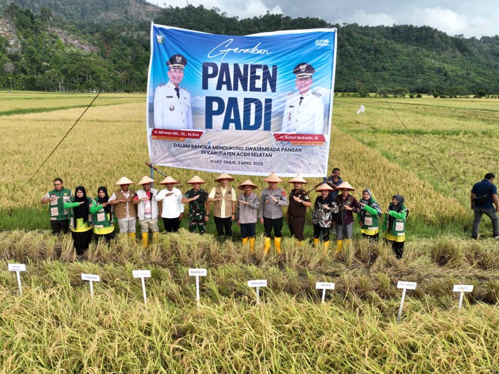 KBBAcehnews.com | TAPAKTUAN – Pemerintah Kabupaten Aceh Selatan menggelar panen raya padi di Gampong Paya Dapur, Kecamatan Kluet Timur, Kamis (2/4/2026) sore. Momentum ini menjadi penegasan optimisme daerah dalam memperkuat peran sektor pertanian sebagai penopang ketahanan pangan nasional.