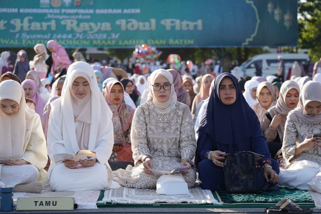 Shalat Idul Fitri kali ini diimami oleh Tgk. H. Zamhuri Ramli SQ MA, yang merupakan salah satu Imam Masjid Raya Baiturrahman Banda Aceh. (Rill/Red).