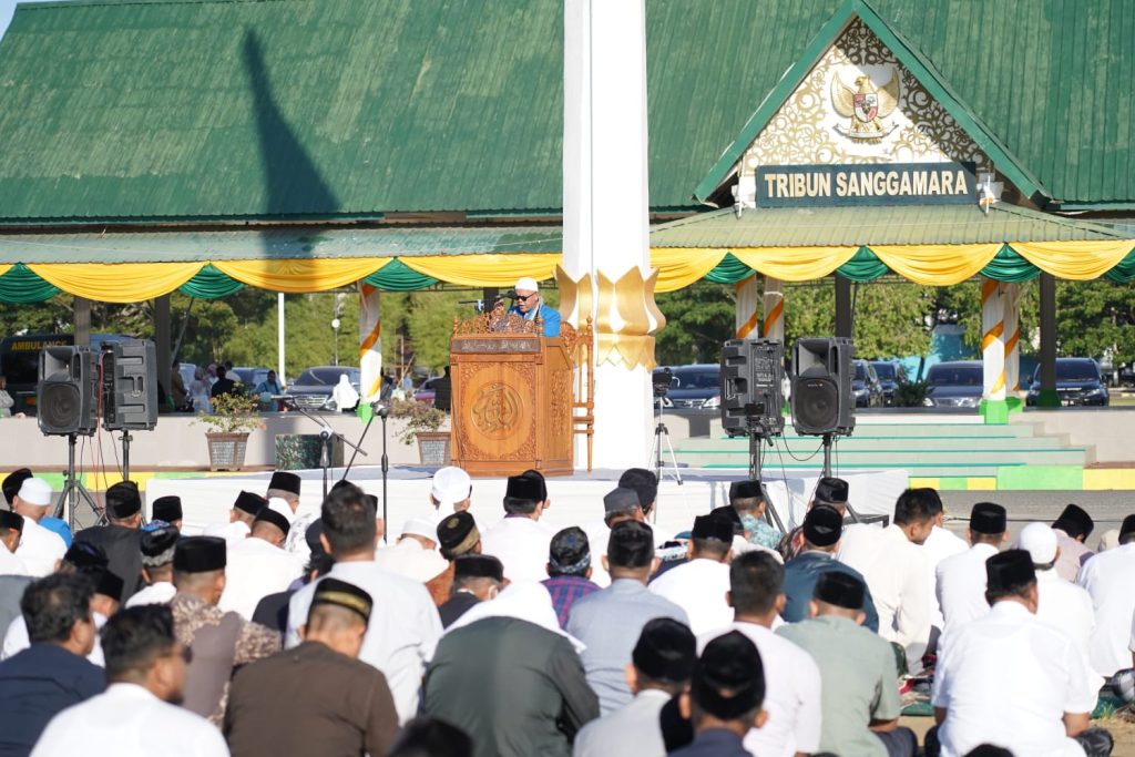 Banda Aceh, KBBACEH.news – Panglima Komando Daerah Militer Iskandar Muda (Pangdam IM) Mayjen TNI Novi Helmy Prasetya, S.IP M.IP bersama dengan Forkopimda Aceh, Ulama dan masyarakat Aceh melaksanakan Shalat Idul Fitri (Shalat Id) 1 Syawal 1444 Hijriah/2023 M di Lapangan Blang Padang, Kota Banda Aceh. Sabtu (22/4/23).