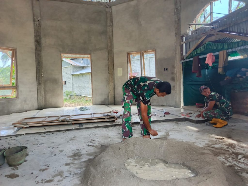 Keramik bantuan tersebut tampak mulai sudah dikerjakan oleh personel Kodim 0107/Aceh Selatan dengan bergong royong bersama masyarakat setempat, Rabu (29/1/2025).