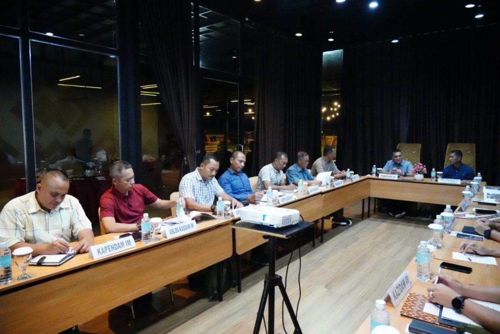 Banda Aceh, KBBAceh.news – Panglima Komando Daerah Militer Iskandar Muda (Pangdam IM) Mayor Jenderal TNI Niko Fahrizal, M.Tr (Han)., menerima audiensi dari Tim Pengumpulan Data Kajian Khusus Staf Ahli Kasad tentang Yon PDR, Brigjen TNI Wawan Pujiatmoko dan Kolonel Arh Fahruddin, S.E., M.Han., di Rooftop Grand Arabia Portala Hotel, Senin malam 22/07/24.