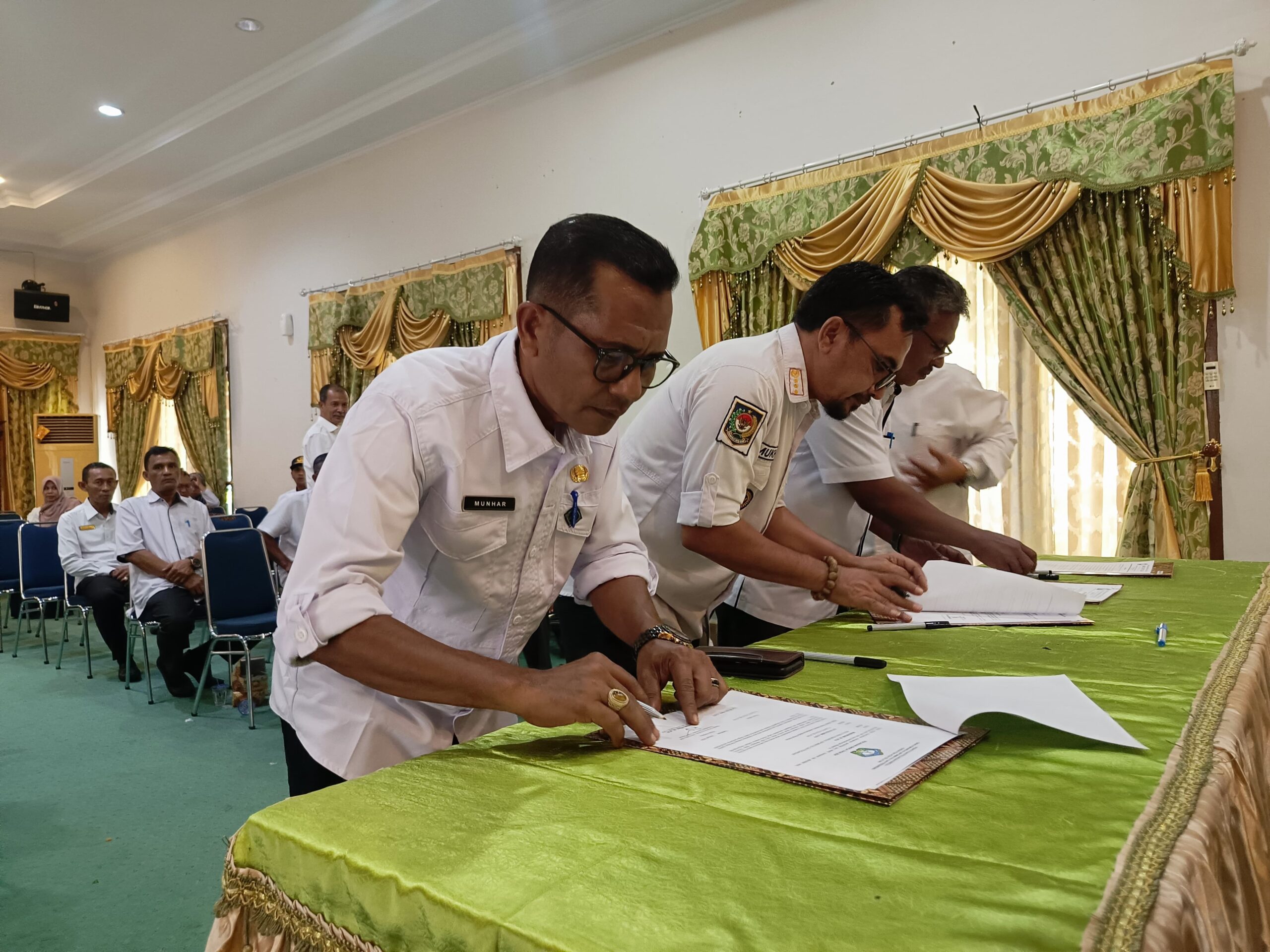 Tapaktuan, KBBAceh.news – Penandatanganan Serentak Pakta Integritas ini dilakukan bagi Pejabat Pimpinan Tinggi Pratama dilingkungan Pemerintah Kabupaten Aceh Selatan Tahun Anggaran 2024,  secara simbolis dilakukan oleh Sekretariat DPRK, Camat Tapaktuan, Dinas Pariwisata, Dinas Perhubungan dan Dinas Pemberdayaan Masyarakat dan Gampong (DPMG), di Hall Pendopo Bupati Aceh Selatan, Rabu (29/5/2024).