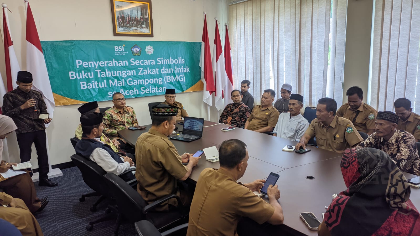 Penyerahan Buku Tabungan dan QRis difasilitasi oleh Kepala Cabang Bank BSI Tapaktuan Irvandady yang dihadiri Ketua Badan BMK Taufik Hidayat Harahap, Anggota Badan Baitul Mal Kabupaten Aceh Selatan (Tgk Misbar Basri dan Syafriadi) Kepala Sekretariat BMK Aceh Selatan Gusmawi Mustafa dan Asmara Bakti selaku Kasubbag Pemberdayaan,