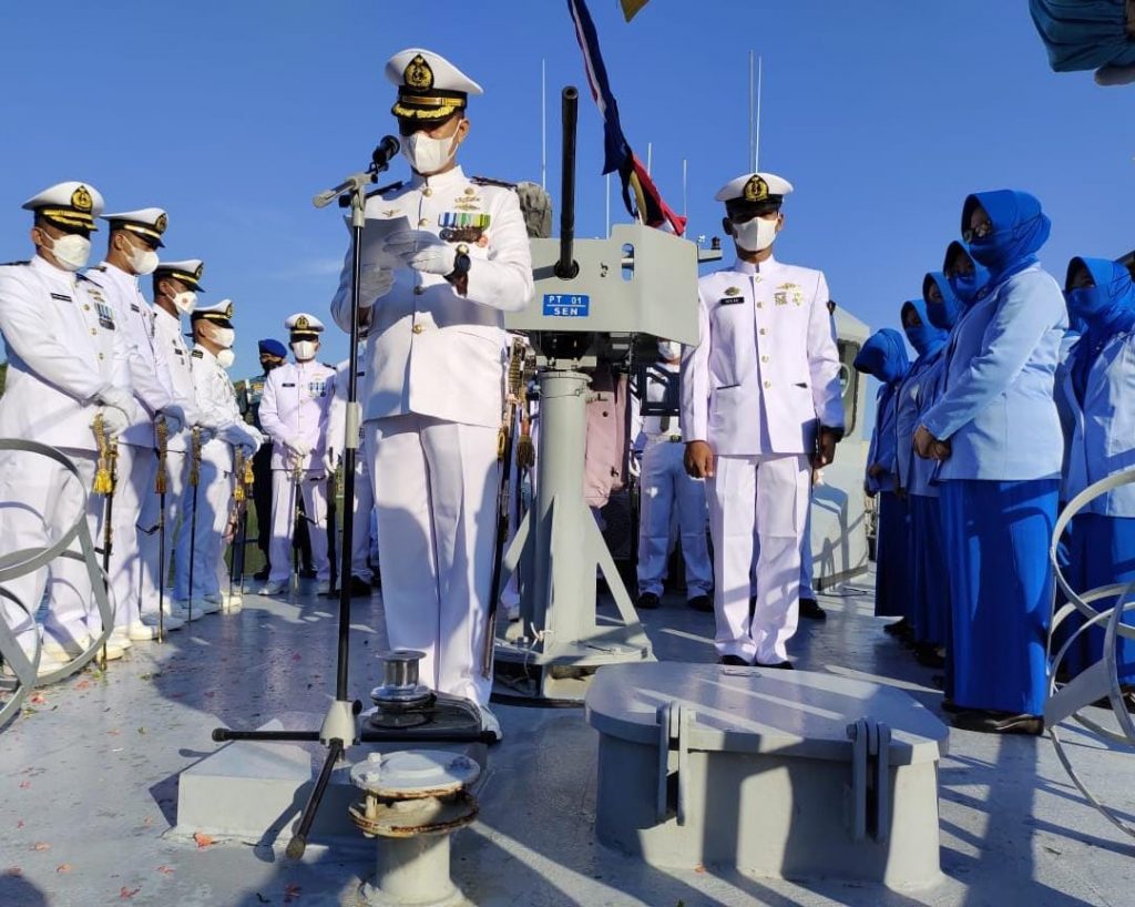 Simeulue – Komandan Pangkalan TNI AL Simelue Letkol Laut (P) Ahmad Fahribi pimpin upacara Hari Dharma Samudera tahun 2022 dan Tabur Bunga diperaiaran Teluk Sinabang menggunakan KAL Sinabang I-1-69.