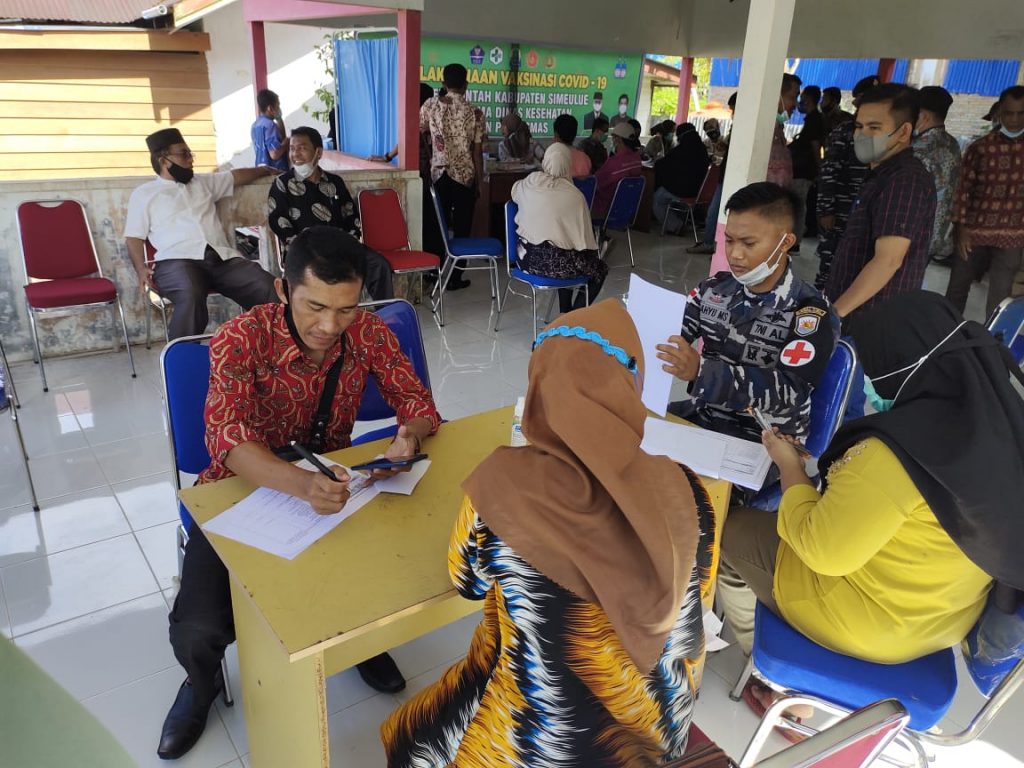 Antusias masyarakat terlihat cukup tinggi untuk mengikuti vaksinasi Covid-19, dengan tim vaksinator berasal dari tenaga kesehatan Lanal Simeulue dan Puskesmas Simeulue Timur. Dalam kegiatan tersebut puluhan orang berhasil divaksin sedangkan beberapa orang gagal divaksin dikarenakan terdapat riwayat kesehatan yang belum memenuhi kriteria.