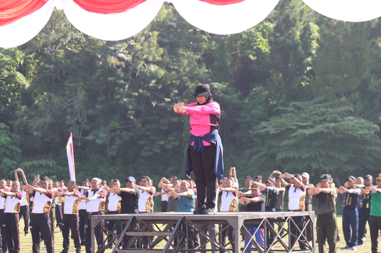 Kegiatan dimulai dengan senam bersama yang dipandu oleh instruktur profesional, diikuti oleh seluruh peserta dengan antusias. Setelah itu, dilanjutkan dengan permainan Bola ria yang melibatkan anggota kepolisian dan instansi terkait dalam suasana penuh kegembiraan dan keakraban.