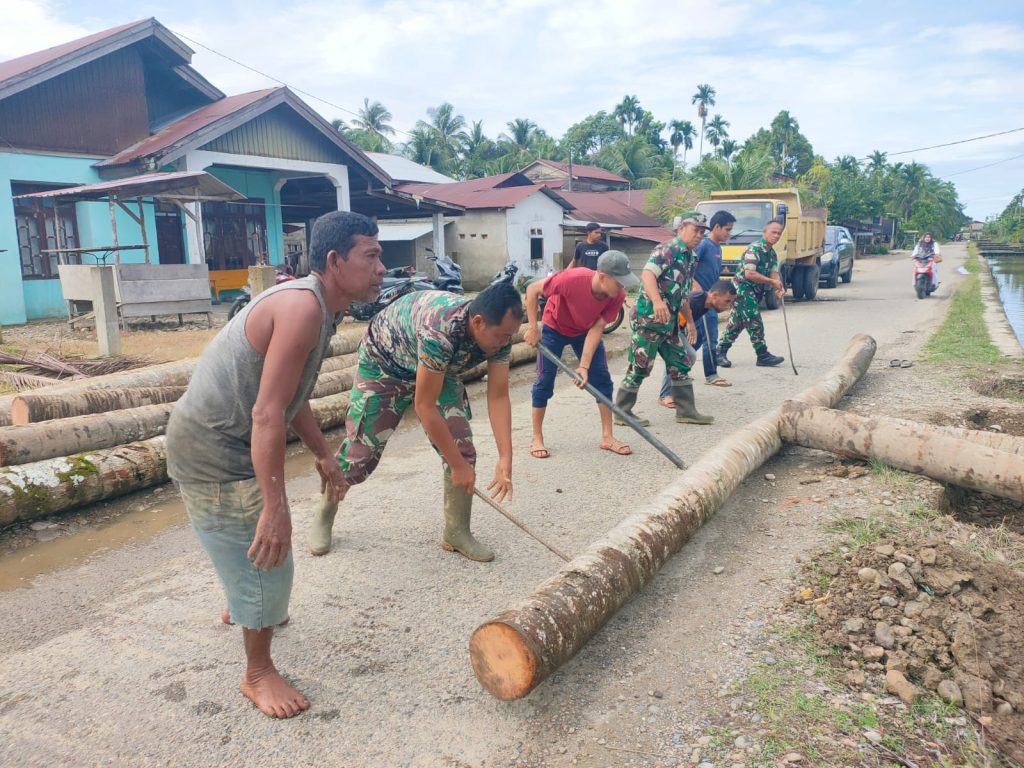 “Untuk itu, hari ini kita bersama masyarakat setempat bergotong royong memperbaiki jembatan dengan menggantikan batang kelapa yang sudah lapuk dengan yang baru,”jelas Danramil.