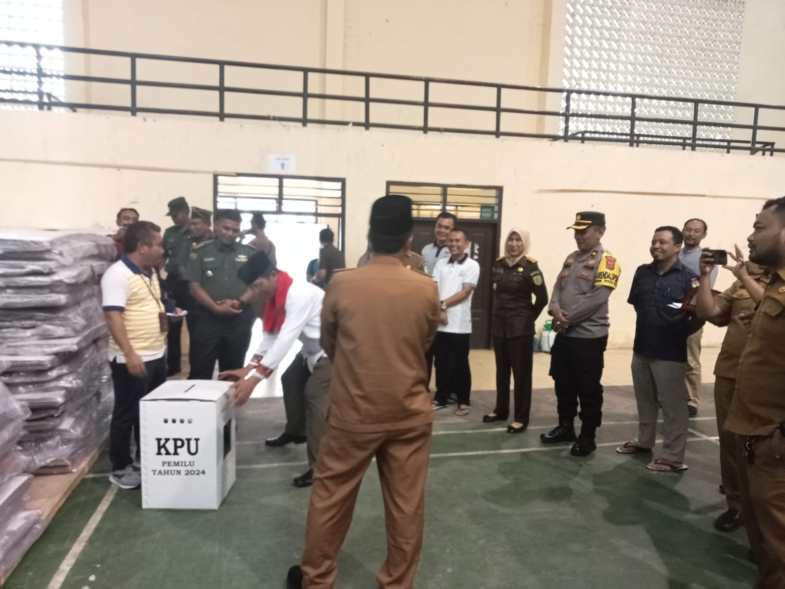 Kutacane, KBBAceh.News | PJ Bupati Agara Drs Syakir MSi bersama Fourum Koordinasi Pimpinan Daerah (Forkopimda) Aceh Tenggara, mengecek logistik KIP kabupaten. Hal ini dilakukan untuk kesiapan menjelang Pemilihan Umum (Pemilu) legeslatif dan presiden tahun 2024. Pengecekan ini adalah merupakan monitoring perkembangan situasi dan kondisi daerah dalam kesiapan menjelang pemilu.