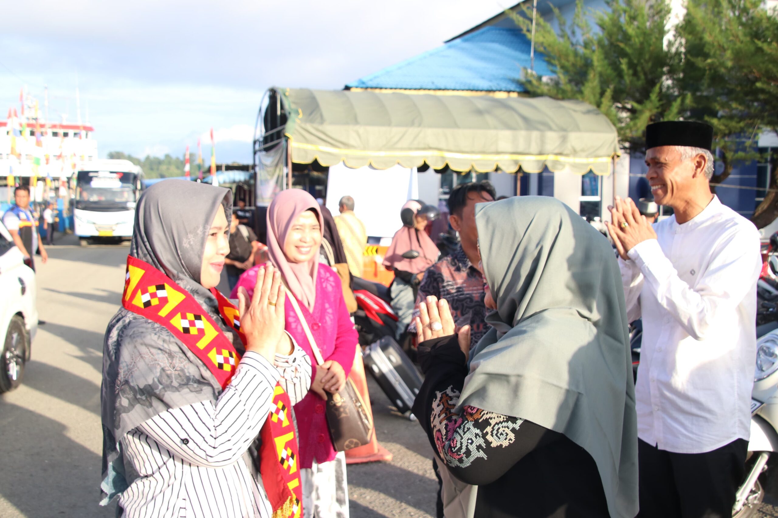 Simeulu, KBBAceh.news- PJ. Ketua TP. PKK Aceh Selatan Bd. Yuliani Irvana,S.Tr.Keb, beserta rombongan Tiba di pelabuhan kolok Simeulue di sambut Plt .Sekda Kabupaten Simeulue, Asludin, SE, M.Kes sembari mengalungi sal Khas Simeulue, Minggu ( 26/11/2023).