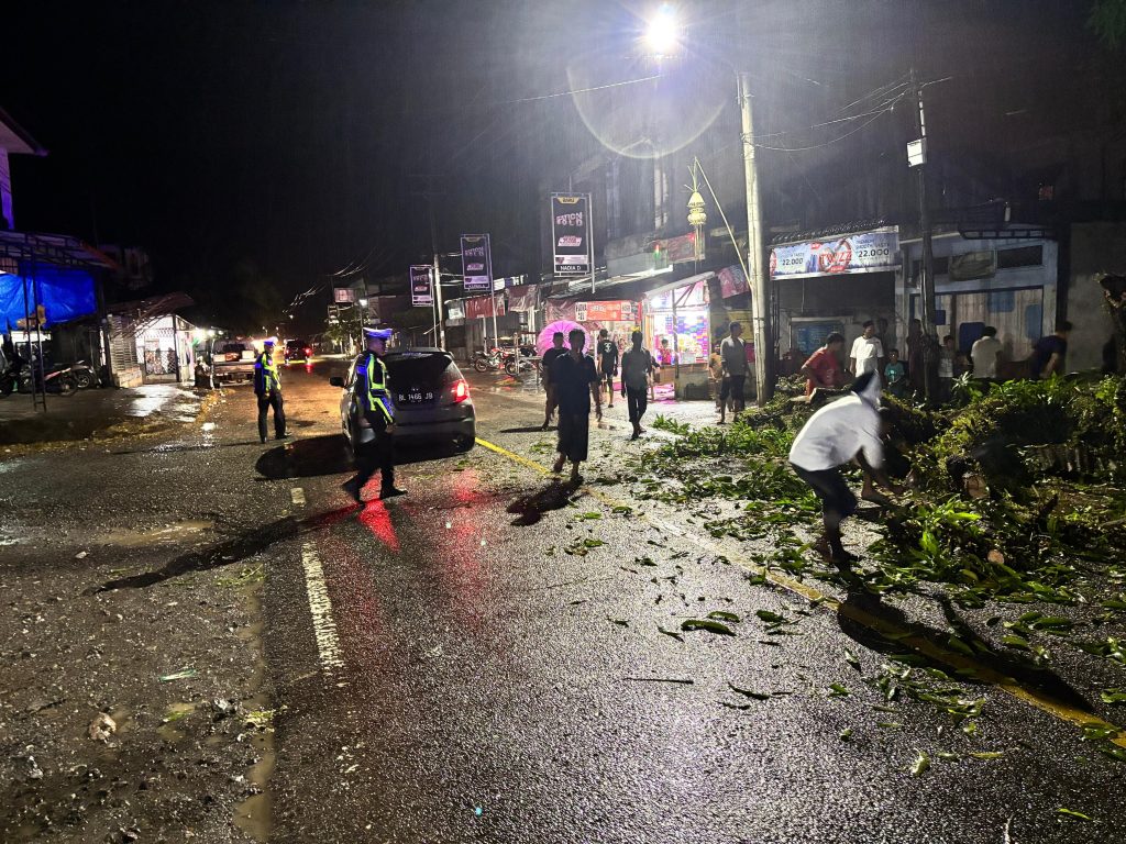 Dengan adanya laporan dari masyarakat, personel Satlantas Polres Aceh Selatan gerak cepat turun langsung ke lokasi guna melaksanakan pengamanan serta pengaturan lalu lintas. Selain itu, personel turut membantu masyarakat memindahkan batang pohon yang menutupi badan jalan agar akses kendaraan kembali lancar.