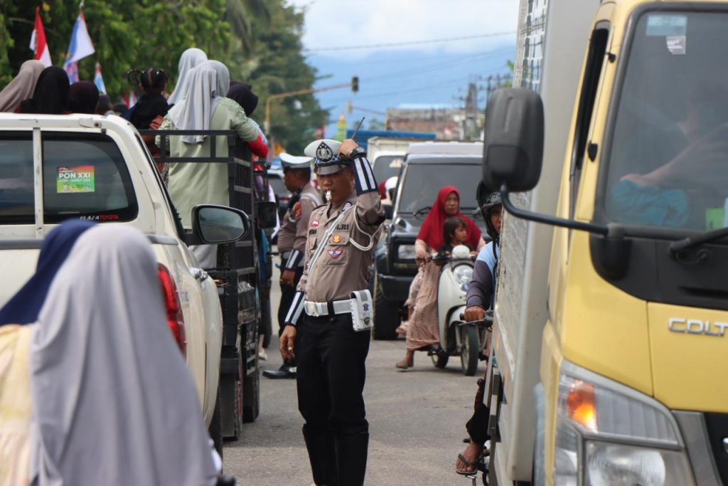 “Pengamanan ini bertujuan untuk menjamin kelancaran kegiatan kampanye terbuka dan mencegah terjadinya potensi gangguan, serta memastikan arus lalu lintas tetap normal dan lancar,” ucap Kasi Humas