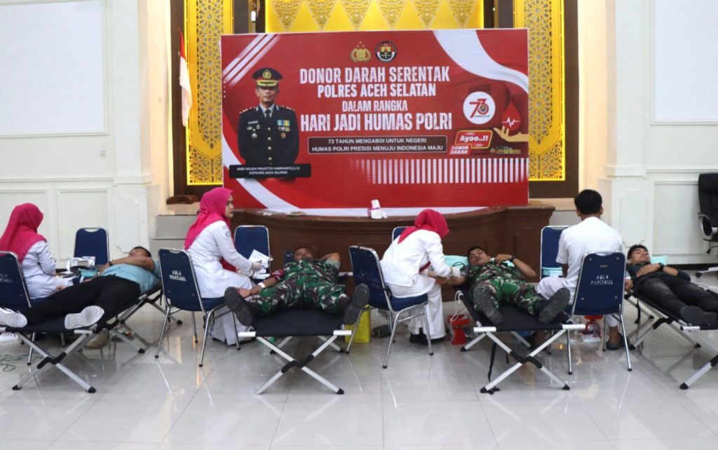 Kegiatan Donor darah dipimpin langsung oleh Kasi Humas Polres Aceh Selatan AKP Adam Sugiarto bekerjasama dengan Sidokes Polres Aceh Selatan dan Unit Tranfusi Darah ( UTD ) RSUD Yuliddin Away.Sedangkan untuk peserta donor melibatkan, Personil Polres Aceh Selatan, TNI, Wartawan dan Mahasiswa.