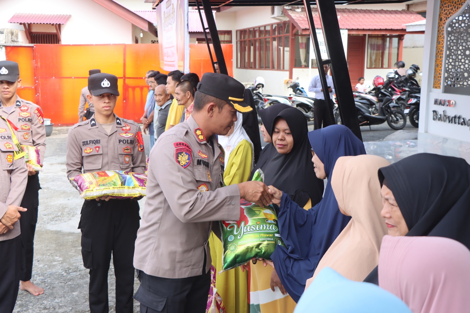 Kapolres Aceh Selatan AKBP Mughi Prasetyo Habrianto selaku penanggung jawab BKM secara simbolis telah menyerahkan Zakat Fitrah berupa beras Premium sebanyak 250 Kg kepada 25 orang Mustahik.