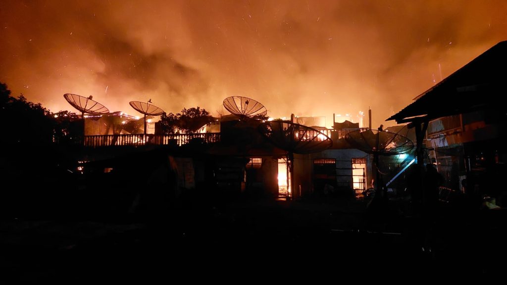 KBBAcehnews.com | Tapaktuan – Kebakaran hebat melanda 13 unit ruko semi permanen di Lorong Taqwa, Desa Kotafajar, Kecamatan Kluet Utara, Kabupaten Aceh Selatan, pada Sabtu (28/3/2026) sekira pukul 02.20 WIB. Peristiwa yang terjadi saat sebagian besar warga sedang beristirahat tersebut sontak menimbulkan kepanikan, karena api dengan cepat membesar dan menjalar ke bangunan lain yang berdekatan.