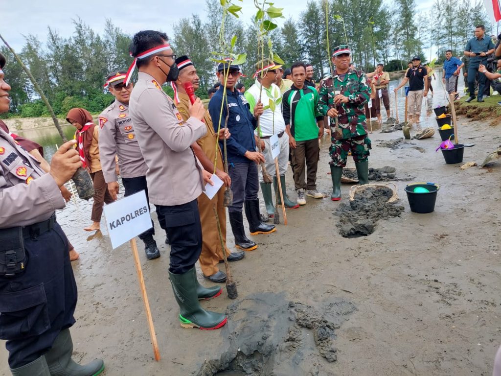 Polres Aceh Selatan Tanam Ribuan Bibit Mangrove di Pantai Pasie Asahan