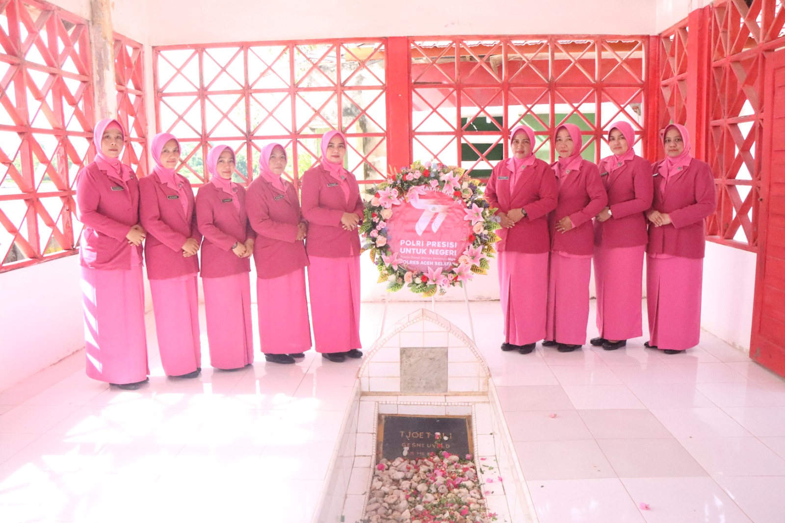 Dalam rangkaian kegiatan tersebut Wakapolres, meletakkan karangan bunga di sebelah makam T.Cut Ali sebagai bentuk penghormatan kepada arwah pahlawan yang telah gugur.