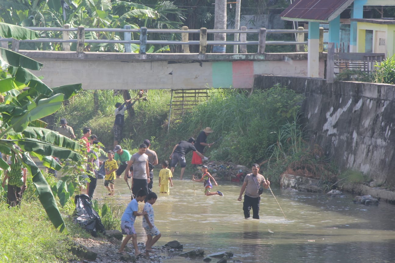 Hari ini, gotong royong dilakukan di sepanjang Krueng Seurulah yang ada di Kecamatan Tapaktuan Kabupaten Aceh Selatan, Minggu (11/6/2023).