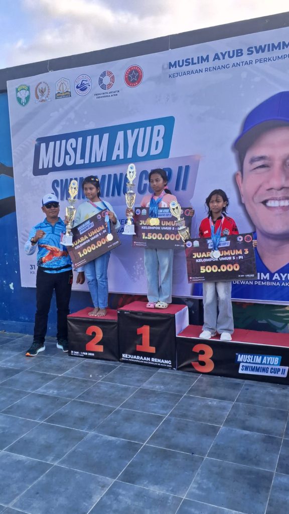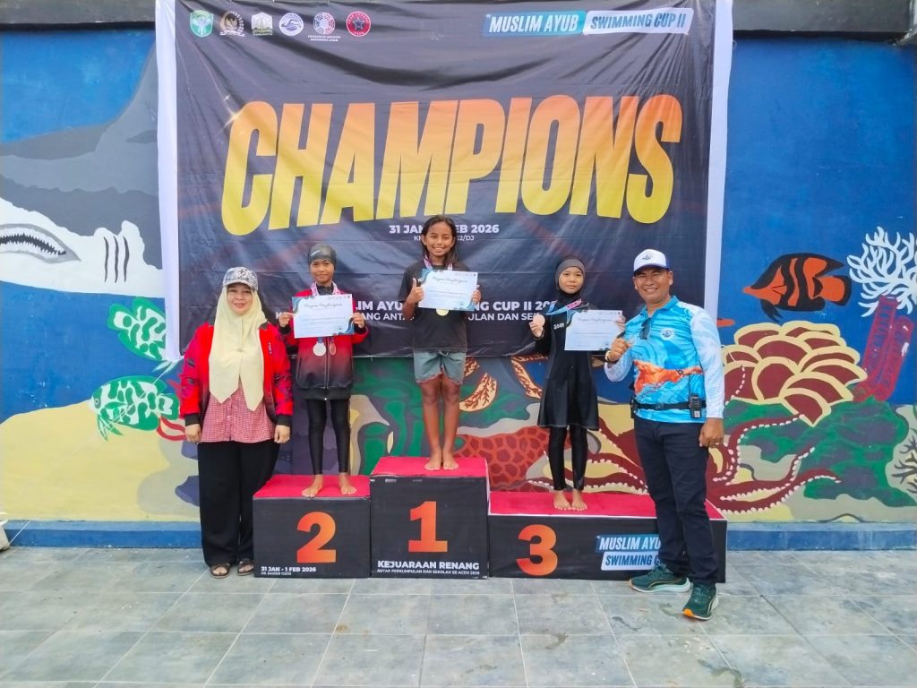 KBBAcehnews.com | Banda Aceh – Klub Renang Lumba-lumba kembali mengharumkan nama Kabupaten Aceh Selatan dengan meraih sejumlah medali pada ajang Kejuaraan Renang Antar Pelajar dan Perkumpulan SE- Aceh Muslim Ayub Swimming Championship II Tahun 2026. Para atlet tampil kompetitif dan menunjukkan kemampuan terbaiknya di berbagai nomor perlombaan.