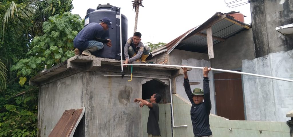 Pantauan dilapangan, hari ini Anggota Satgas melaksanakan pemasangan tandon air sekaligus menyambung pipa dari jalur utama di Meunasah Muhammadiyah bertempat di Desa Tengah Pelumat Kecamatan Labuhanhaji Timur, Sabtu (24/5/2025).