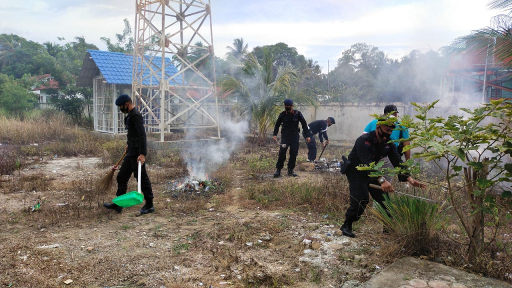 Tapaktuan, KBBACEH.news – Satuan Brimob Polda Aceh melalui Personil Brimob Staf dan Kompi 1 Batalyon C Pelopor melakukan penyemprotan disinfectant untuk mencegah dan memutus mata rantai dan penyebaran covid 19 serta terciptanya rasa aman dan nyaman terhadap masyarakat Aceh Selatan khususnya masyarakat Trumon yang akan menerima pelayanan kesehatan khususnya di UPTD Puskesmas Trumon, Aceh Selatan, Jumat (22/10/2021)